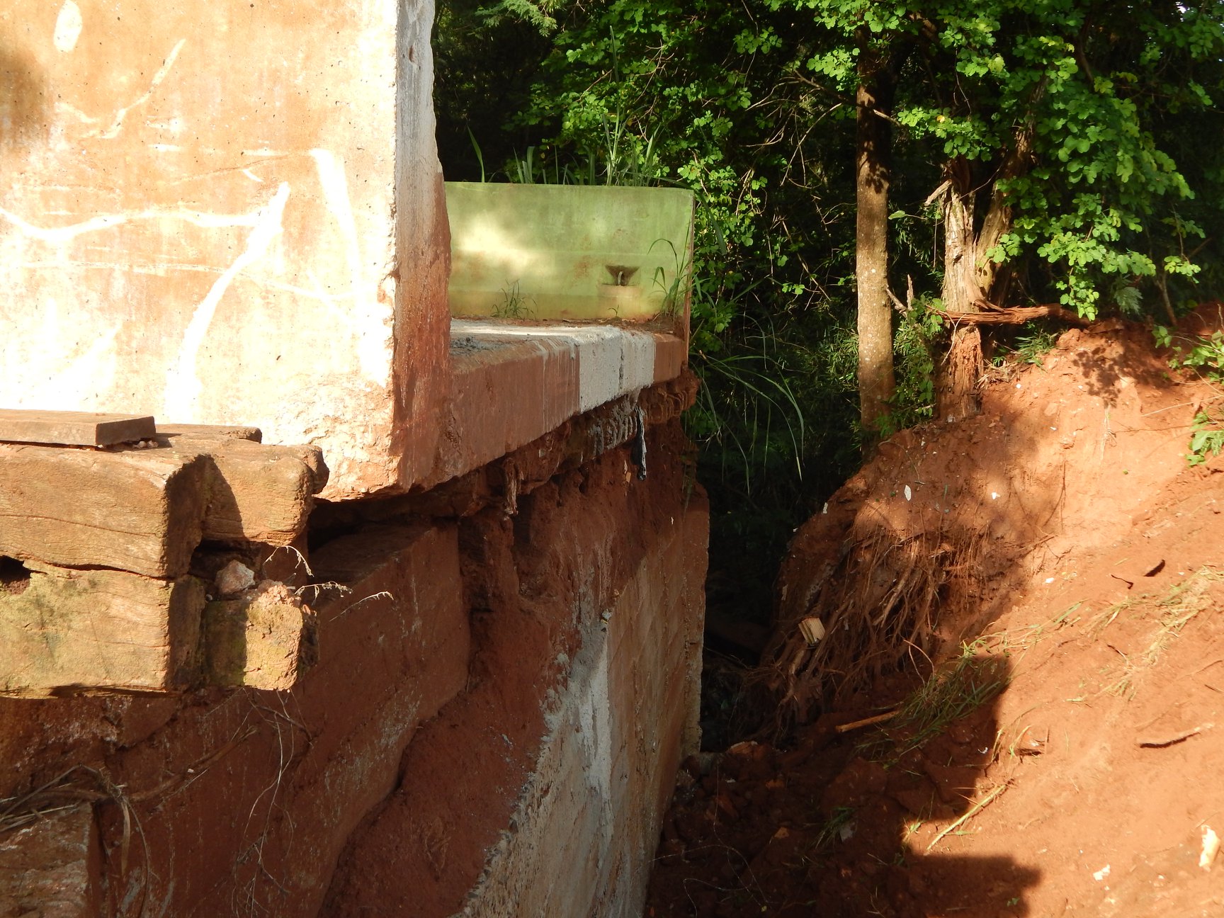 Com a comporta fechada (confira a explicação do secretário no vídeo dos comentários) e as fortes chuvas, a parte lateral da ponte foi levada pela enxurrada, deixando o local – pelo bairro São Jorge – sem acesso (sobrou entrada e saída pela Br-163).