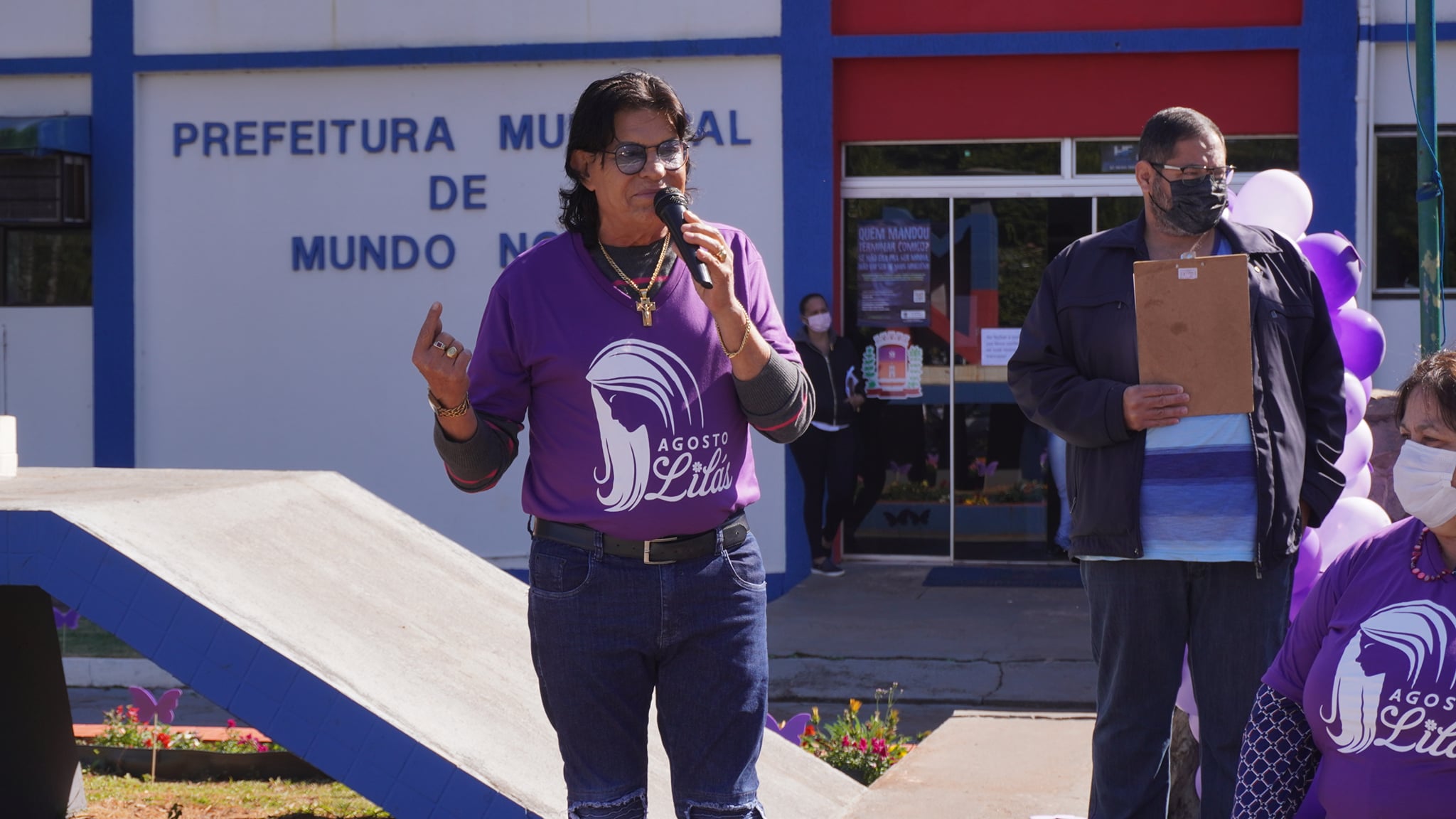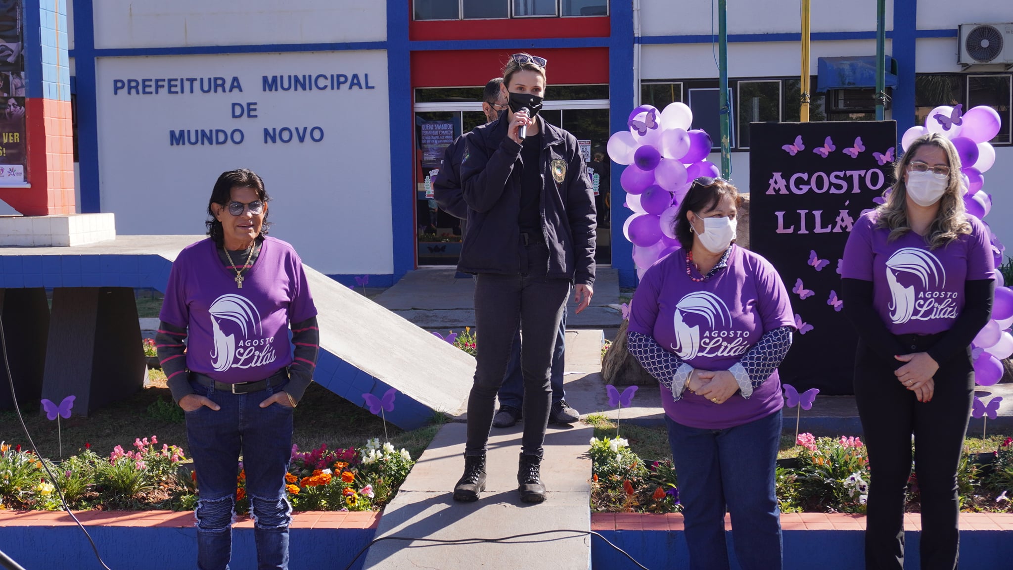 A secretaria de Assistência Social, de Mundo Novo, deu início a campanha “Agôsto Lilás”. Evento realizado nesta quarta-feira (04), em frente à prefeitura. Estiveram presentes as equipes do Cras, Creas, colaboradores da prefeitura, Assistência Social e convidados.